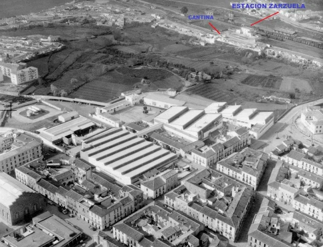 Fotografía en la que aparece la calle de Andaluces y la entrada al patio de carruajes, fuente juangomezco en Forotrenes |